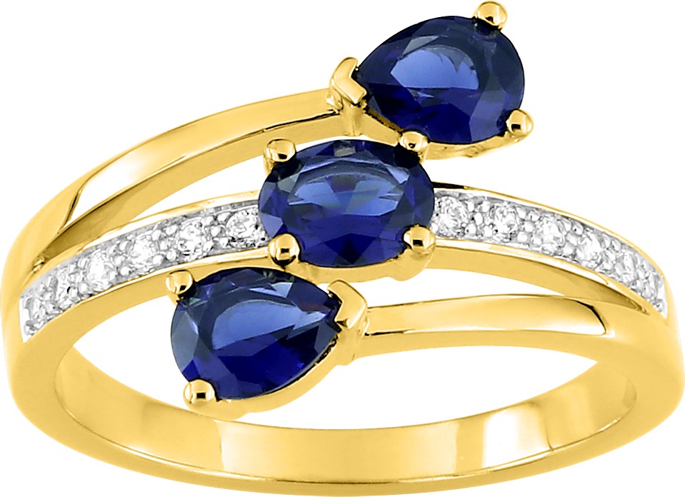 Bague 3 Pierres Bleues en Plaqué Or 18K avec Oxydes