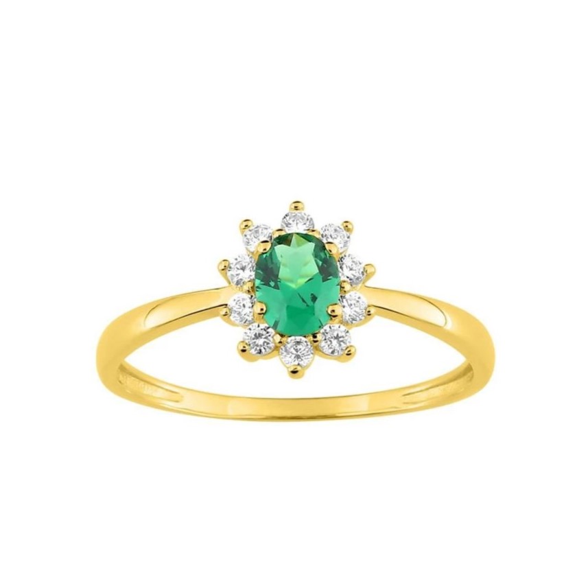 Bague Marquise en Plaqué Or 18K et Oxydes verte et blanches