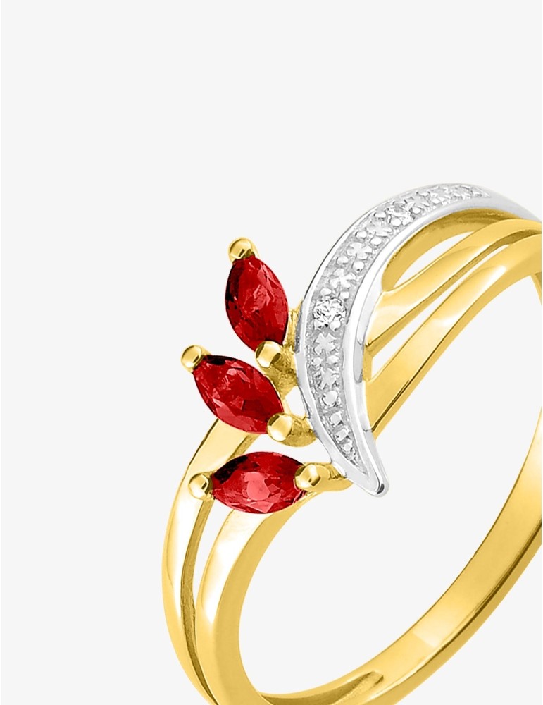 Bague Trilogie en Plaqué Or 18K et Oxydes Rouges