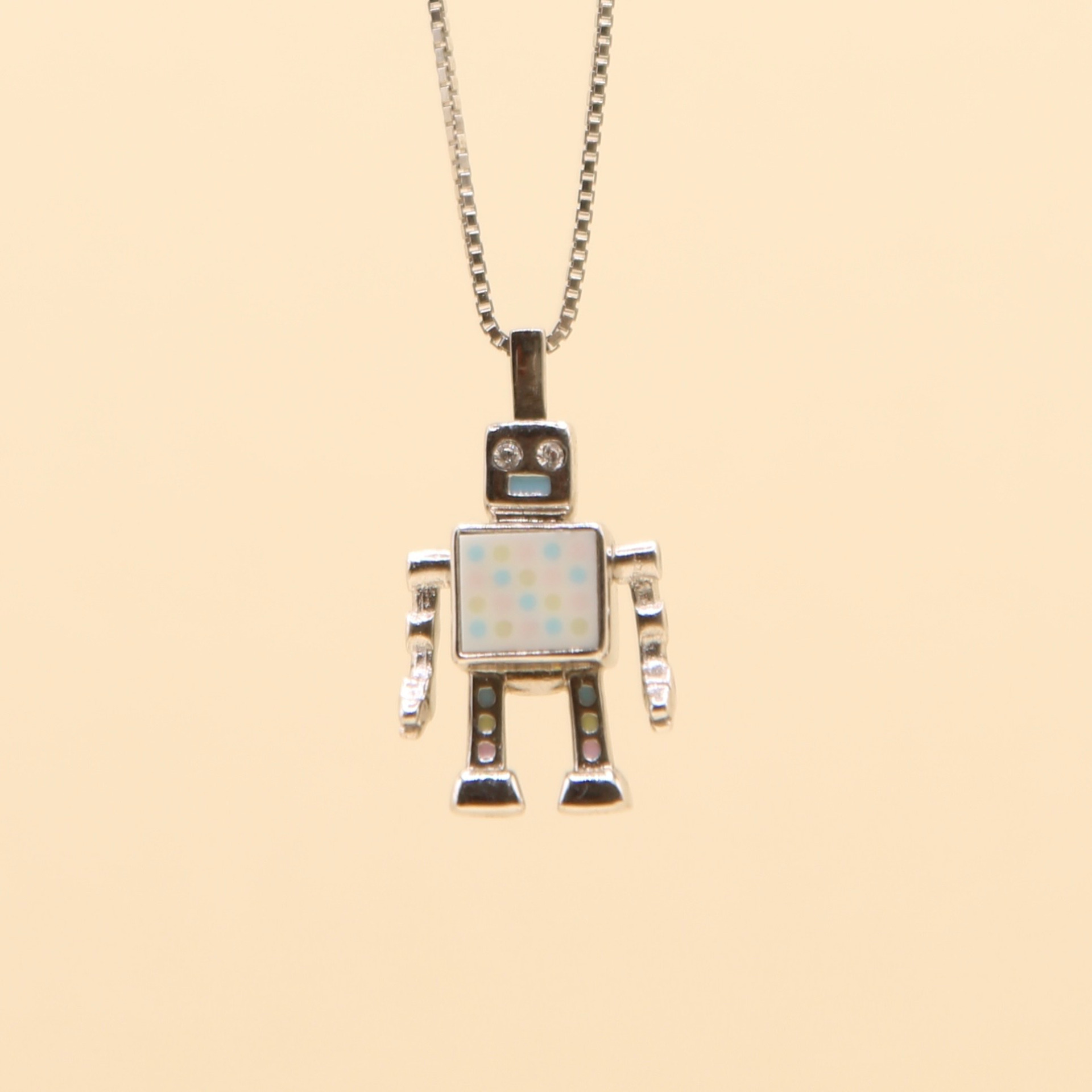 CHIKIBOT - Chikifit - Collier argent rhodié 3g - émail - oxydes de zirconium - maille vénitienne - 50cm