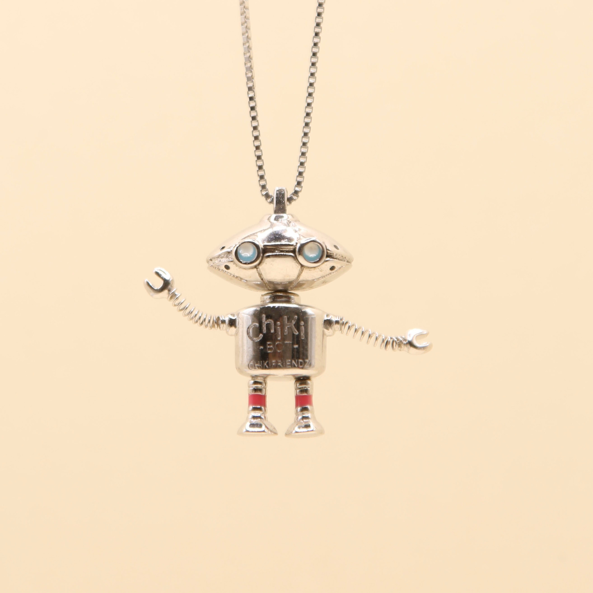 CHIKIBOT - Chikifriendz n°2 - Collier argent rhodié 7,3g - émail - maille vénitienne - oxydes de zirconium - 50cm