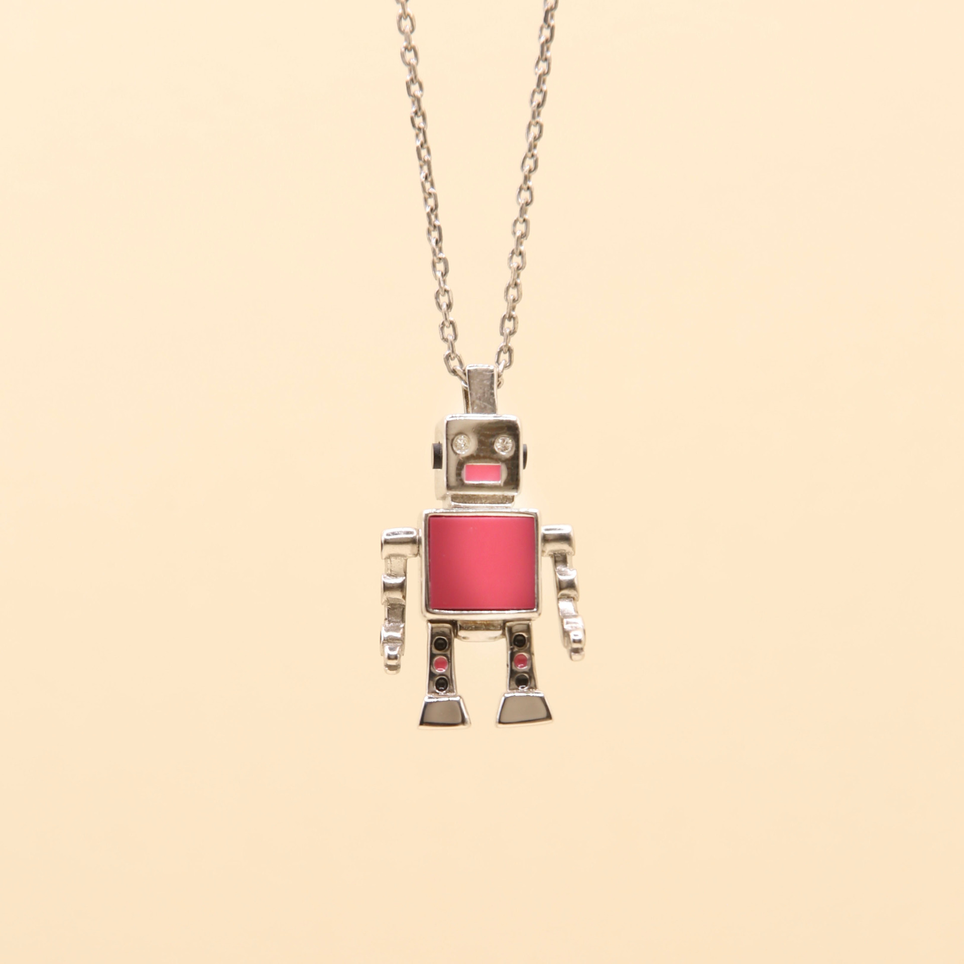 CHIKIBOT - Chikigrrr - Collier argent rhodié 8,1g - émail - oxydes de zirconium - maille forçat - 50cm