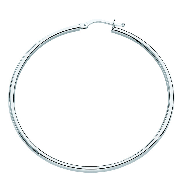 Boucles d'Oreilles Créoles en Or blanc 750/1000e. Fil rond 2mm. Diamètre 45mm.