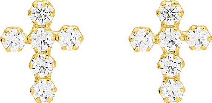 Boucles d'Oreilles Puces en Or 750/1000e Croix et Oxydes de Zirconium.