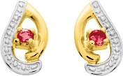 Boucles d'Oreilles Puces 2 Ors 750/1000e avec Rubis